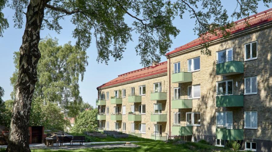 Vår lilla förening ligger trevligt belägen på Toppsegelsgatan i Gråbergets skugga med lugn omgivning, på lagom promenadavstånd från affärer och restauranger. Baksidan vetter mot en lummig sluttning bortom gräsmatta som vår trogne klippare Glenn håller i fint skick. Med lite tur kan man se rådjur betande på morgon eller kväll. Vyn från andra sidan huset är det inget fel på heller, Masthuggskyrkans siluett är fantastisk, såväl i morgonsol som upplyst i mörker.